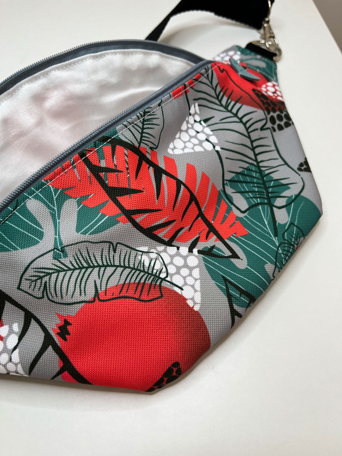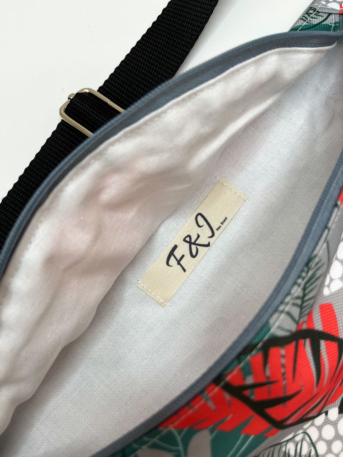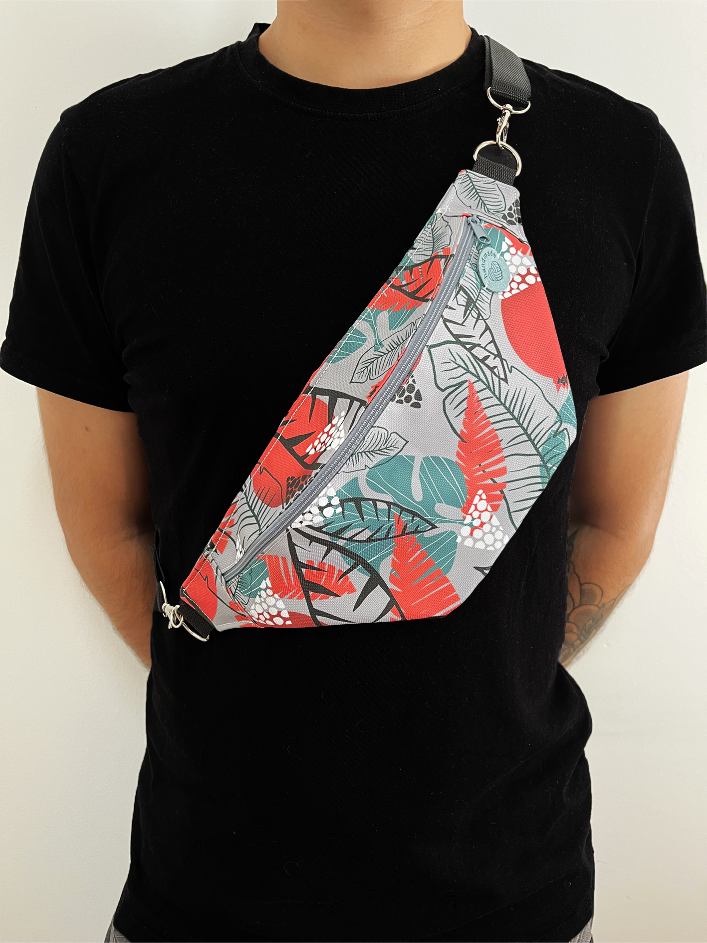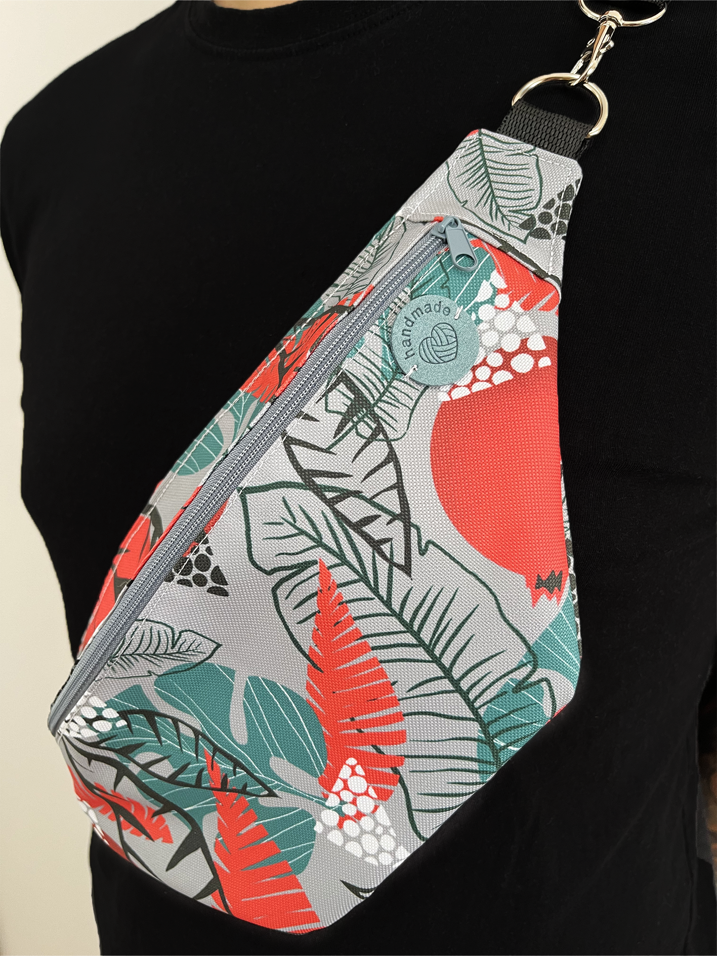 Il tessuto esterno, caratterizzato dalla fantasia distintiva del nostro brand, non è solo esteticamente accattivante, ma è anche impermeabile, garantendo una protezione ottimale contro la pioggia. Che tu stia affrontando una giornata di pioggia o semplicemente voglia un look moderno e resistente, questo marsupio è la scelta ideale.
